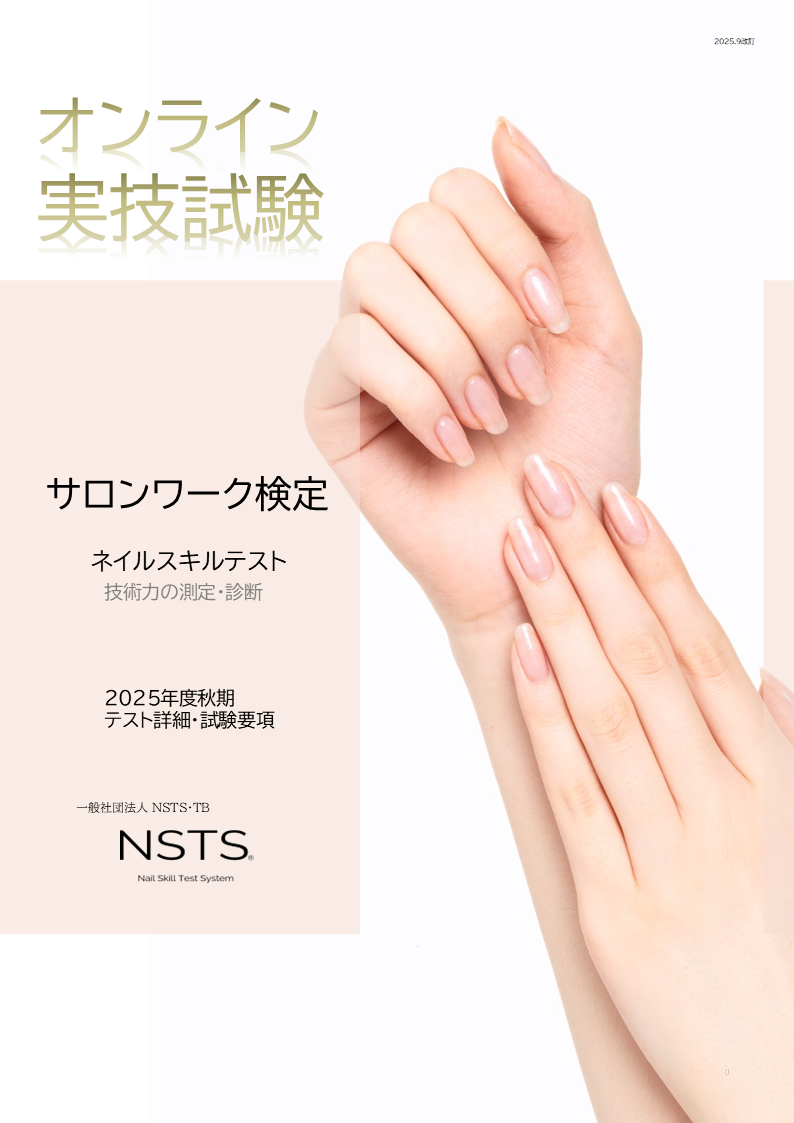 NSTS=ネイスキルテストシステムは、ネイルスキルテストを含め、ネイリストのサロンワークを分析し、各項目ごとの技術の習得、評価を行うシステムです。これにより、ネイリストは自身のスキルを客観的に把握し、テストを通じてさらなるスキルアップをすることが可能です!
